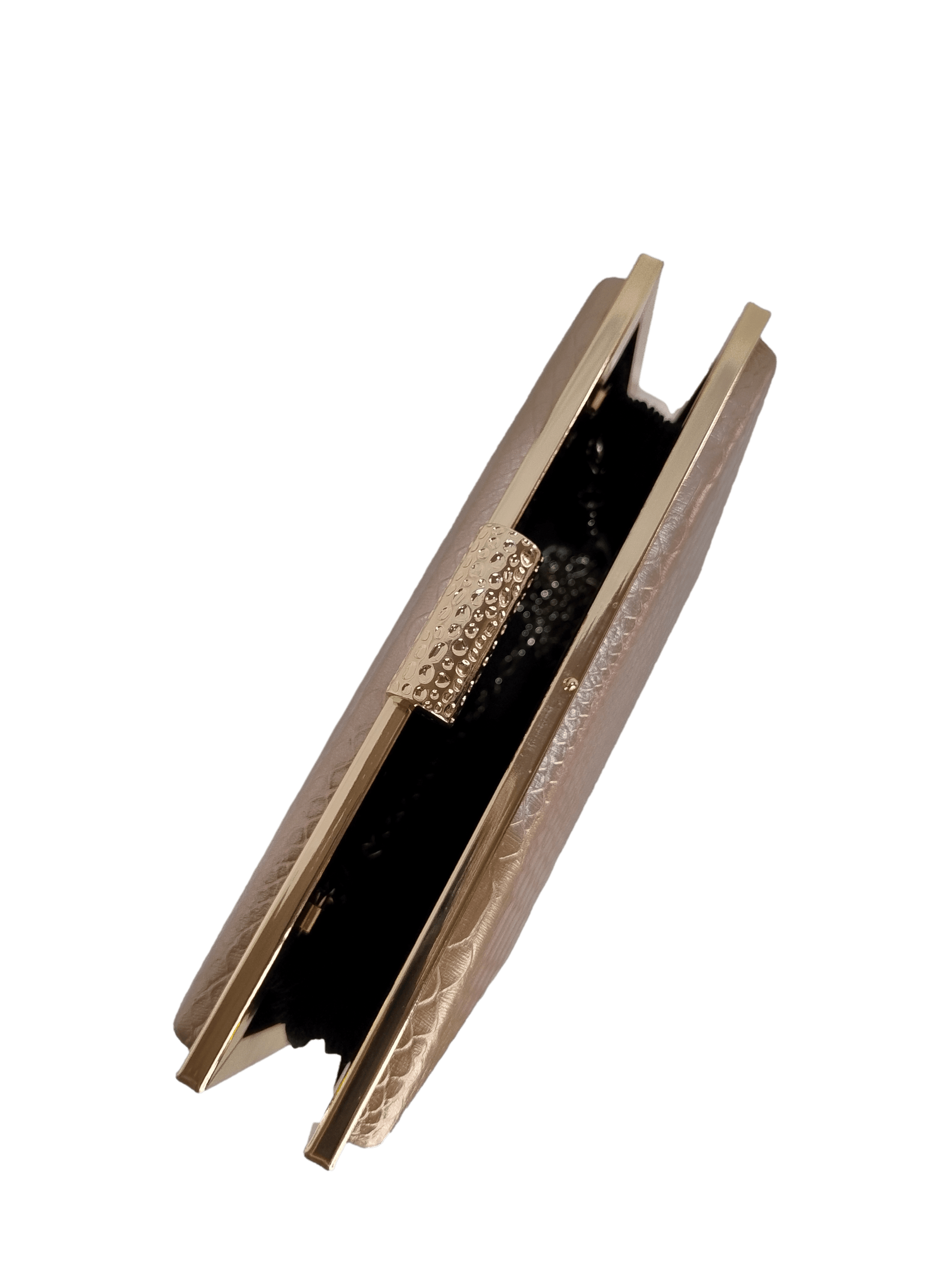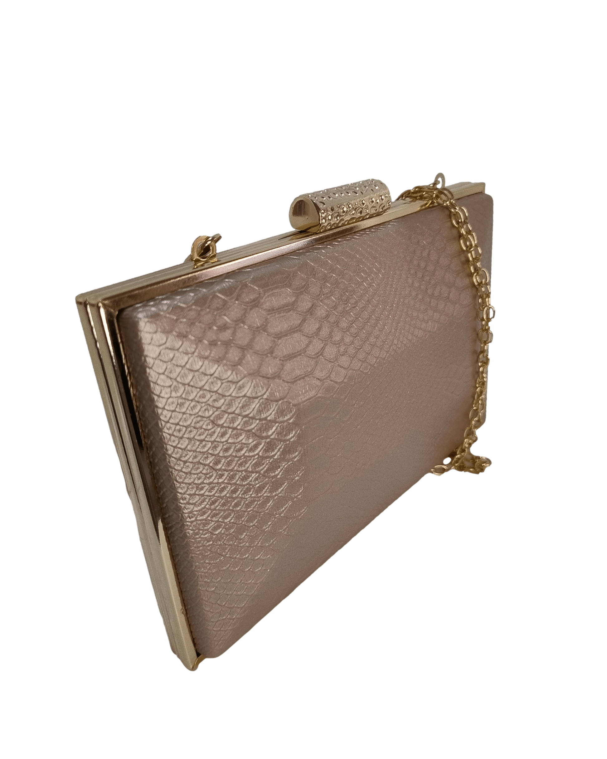 Brilla en cada celebración con este bolso de fiesta metalizado en bronce. Perfecto para bodas, cócteles y noches especiales, combina elegancia con un toque de diversión. Compacto pero espacioso, lleva lo esencial sin renunciar al estilo. ¡Prepárate para deslumbrar!