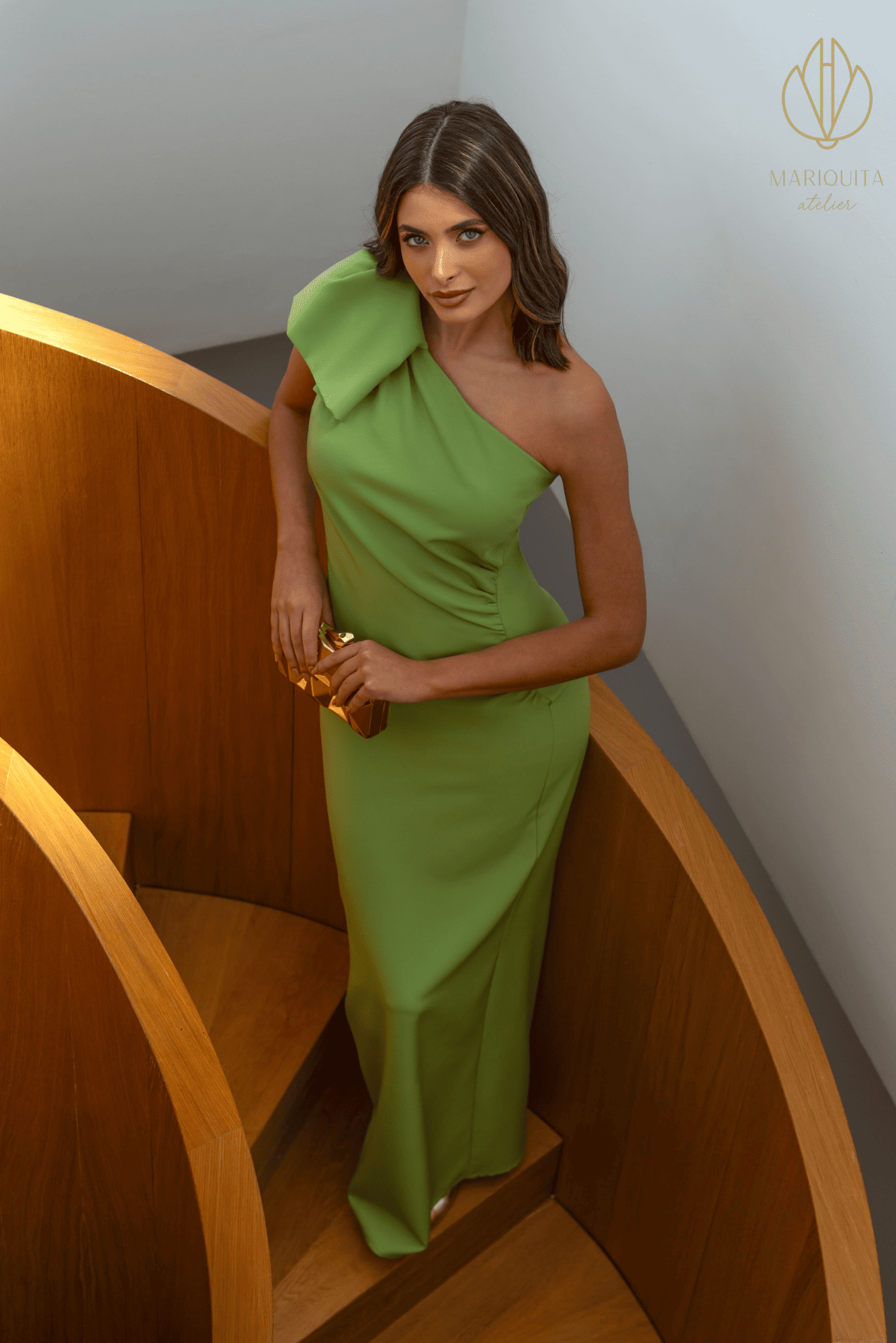 Vestido largo verde asimétrico para invitada de boda, de la marca Mariquita Trasquila, este diseño reúne elegancia, tendencia y sofisticación en una sola pieza. Pensado para mujeres que desean destacar con estilo propio, combina un corte limpio con un detalle estructural en el hombro que aporta personalidad y distinción.
