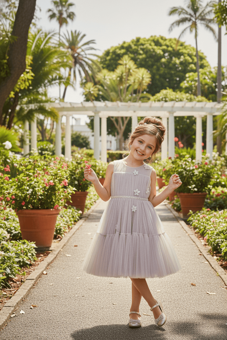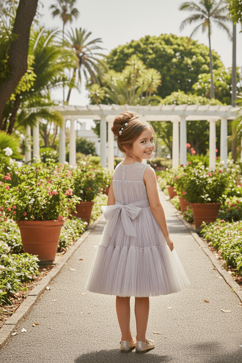 Este vestido de arras corto en malva claro es el toque dulce y encantador que buscas para tu pequeña estrella del día. Su color suave y delicado realza la belleza natural, mientras su diseño cómodo permite jugar y saltar sin preocupaciones. Perfecto para momentos inolvidables y sonrisas espontáneas, este vestido combina estilo y diversión en cada detalle.
