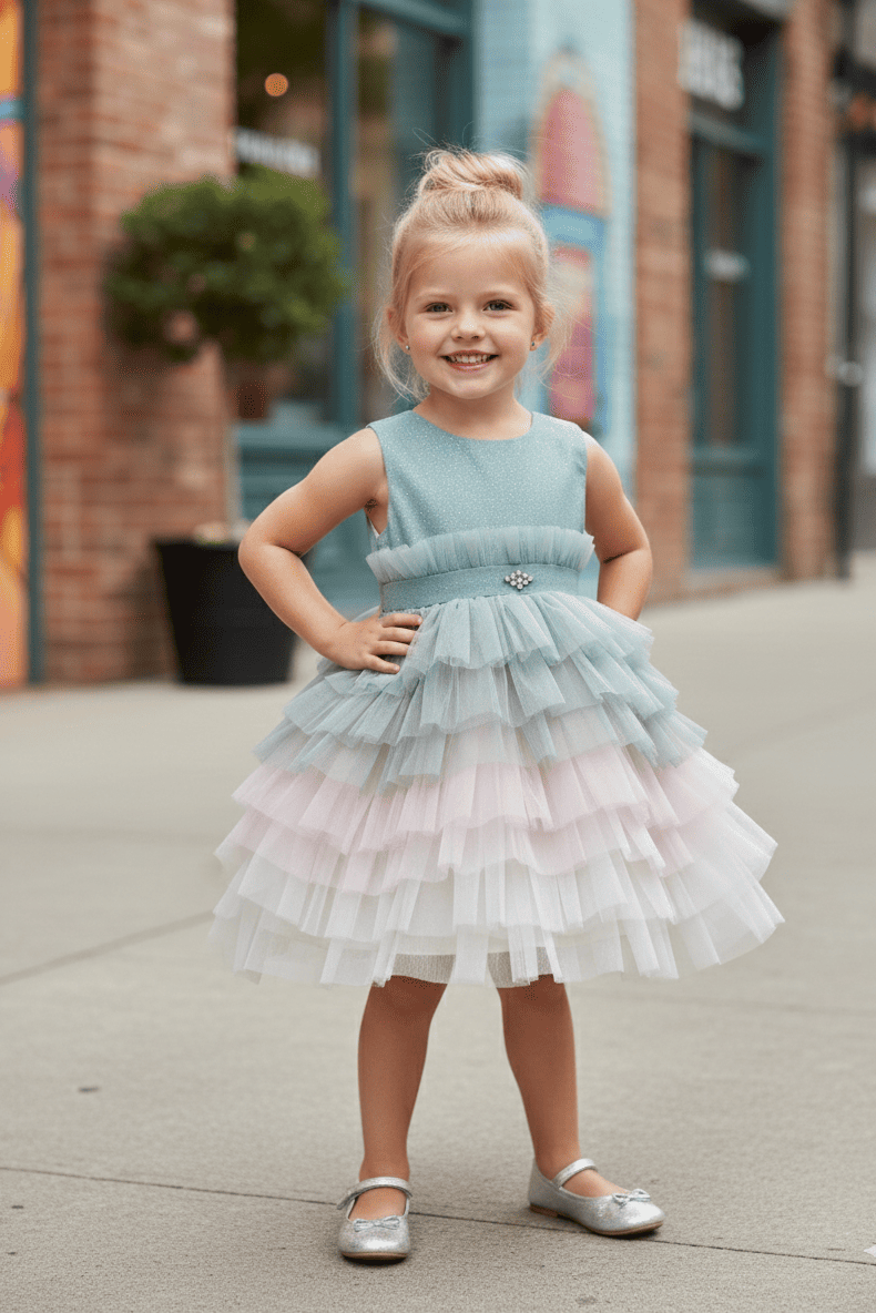 Vestido de arras de tul con volantes en la falda y top brillante.